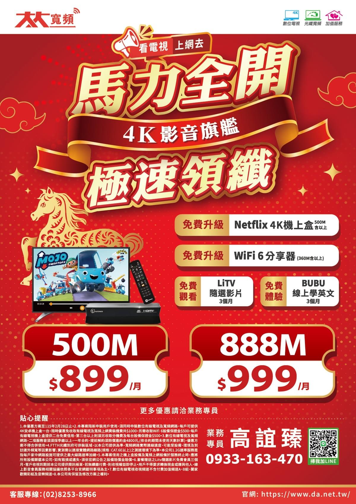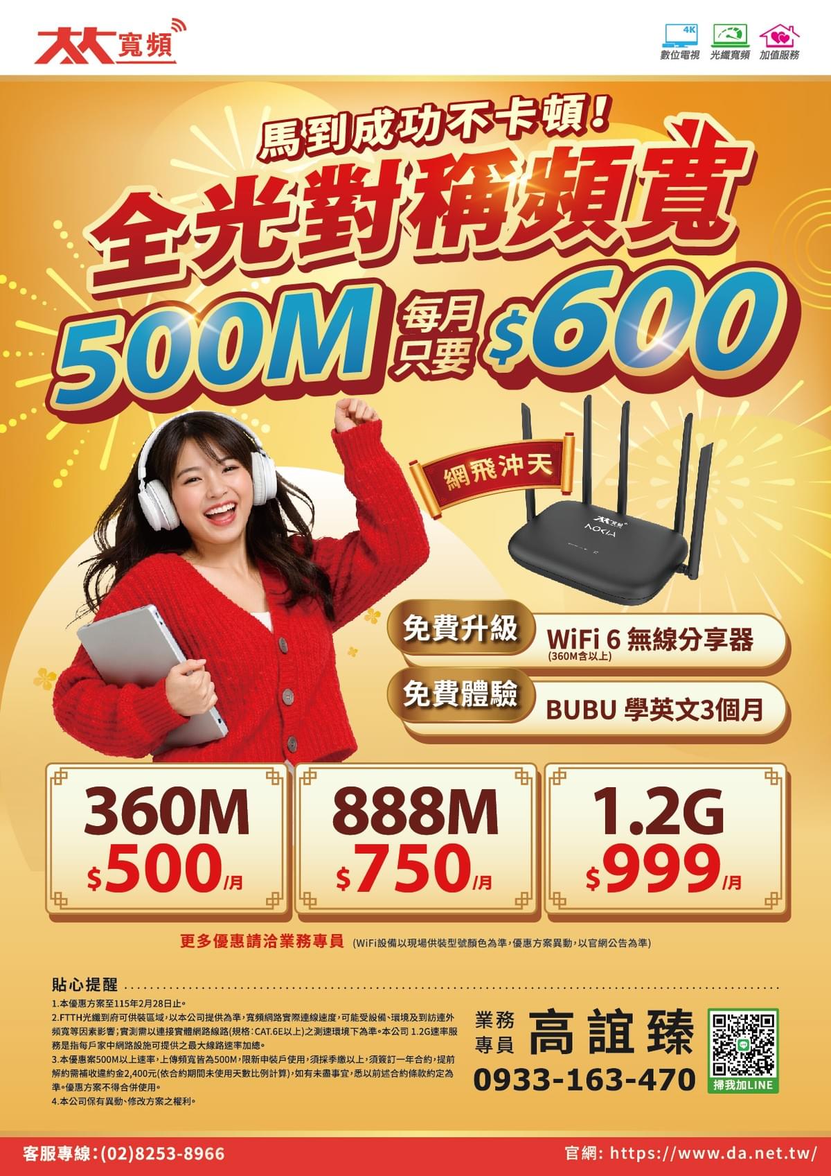 1.有線電視及光纖網路各項優惠依本公司公告費率實施。光纖到府FTTH供裝區域,歡迎加Line id:debra-kao或電話號碼0933163470搜尋來電詢問。